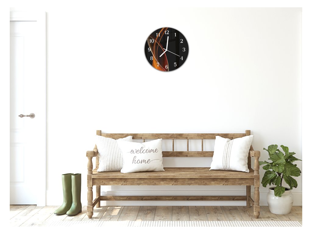 Nástěnné hodiny pr.30cm světlá vlna na tmavě hnědém podkladu