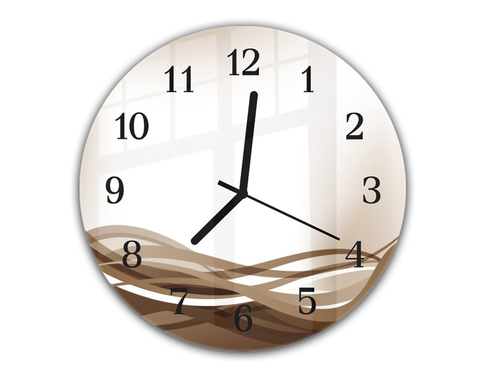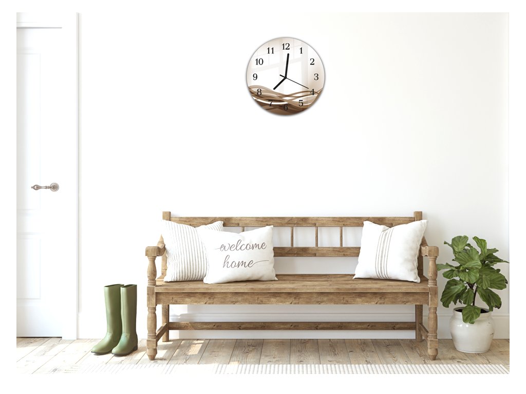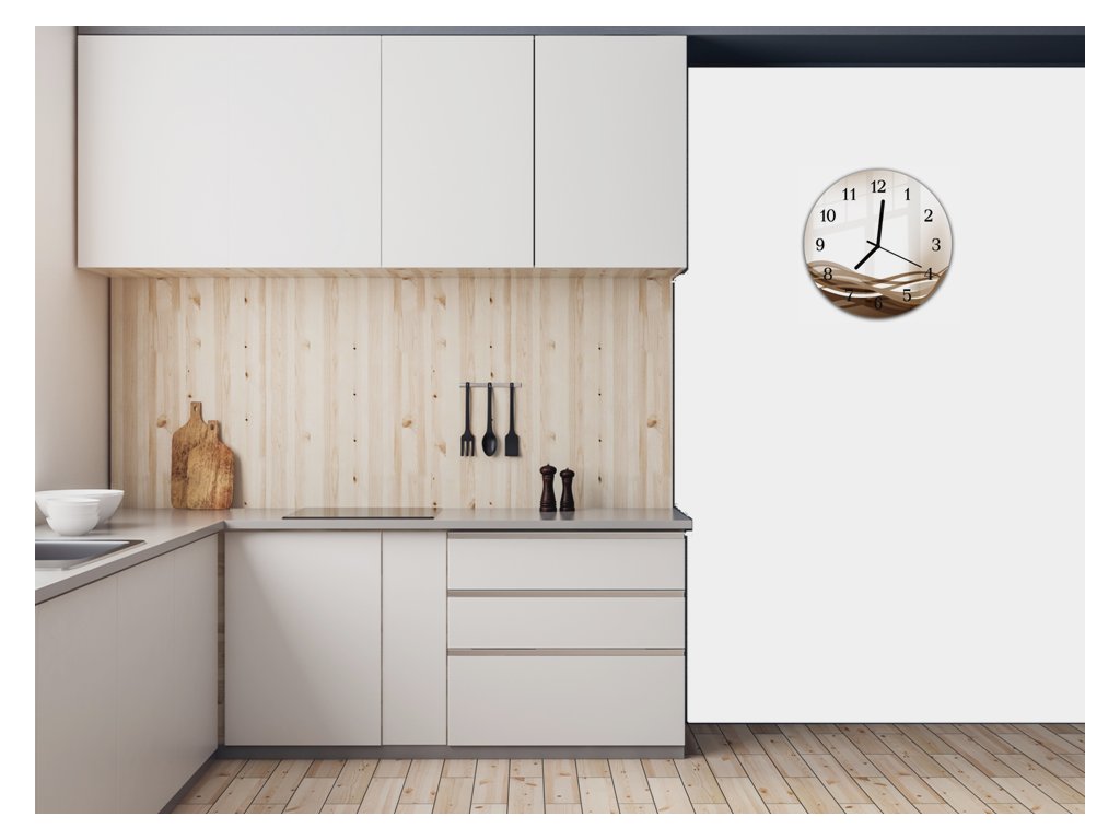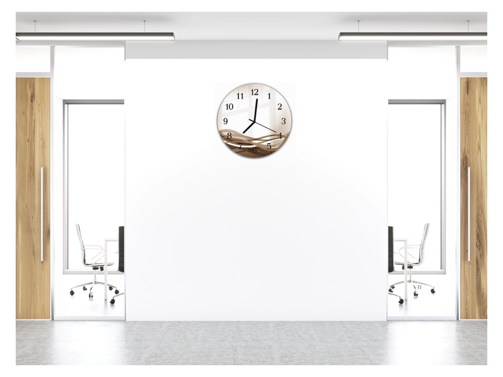 Nástěnné hodiny pr.30cm vektor hnědá vlna na béžovém podkladu