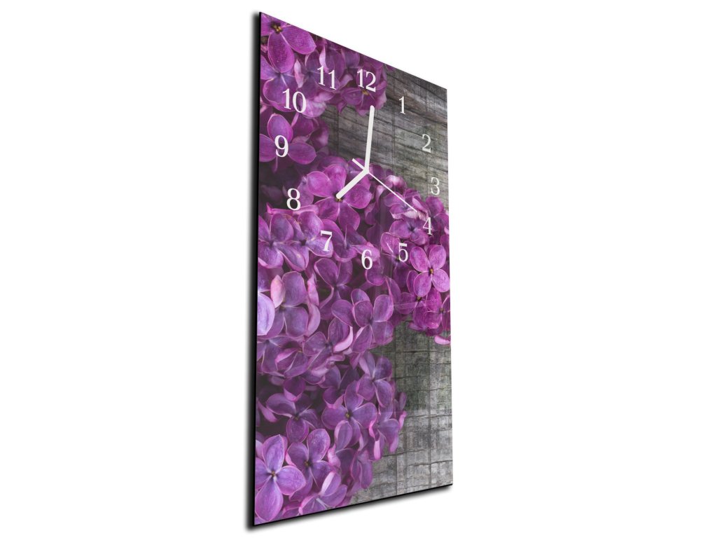 Nástěnné hodiny šeřík na šedém dřevě 30x60cm