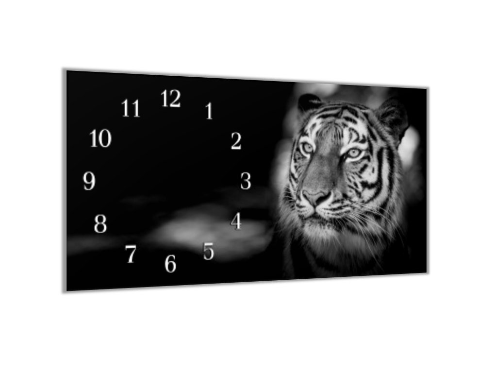 Nástěnné hodiny sklo 30x60cm černobílá hlava tygra