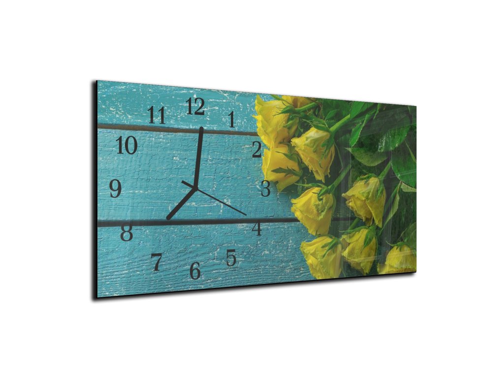 Nástěnné hodiny žluté růže modré dřevo 30x60cm