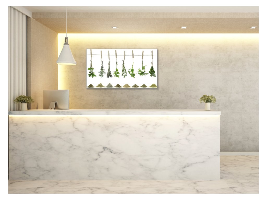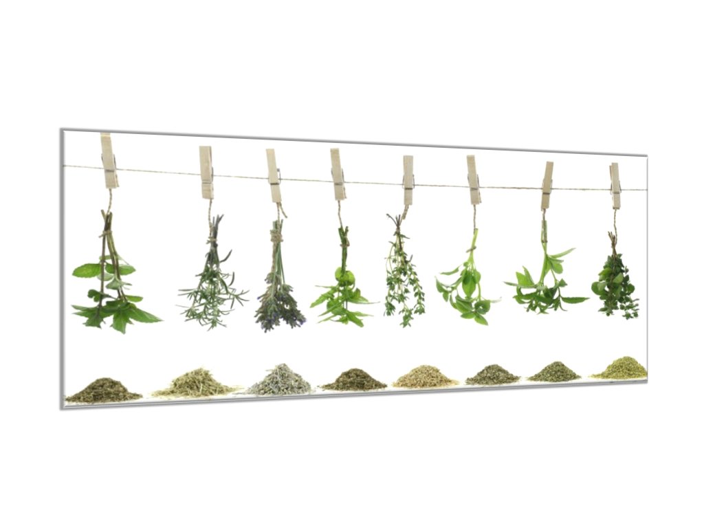 Obraz do kuchyně čerstvé bylinky visí na laně