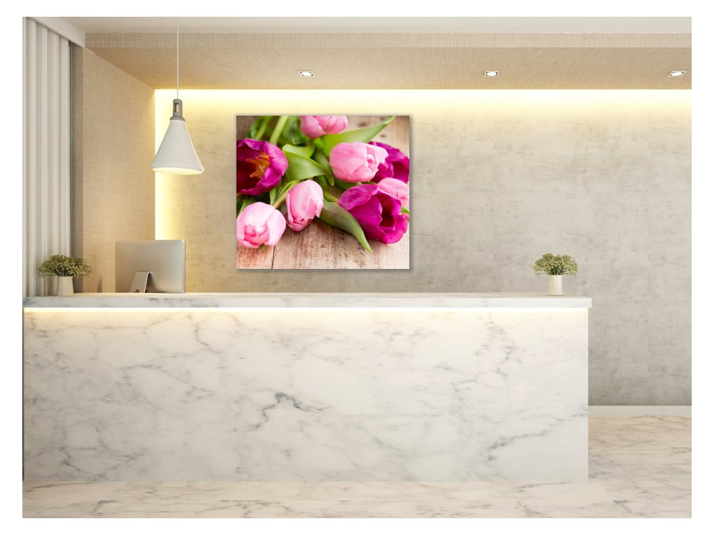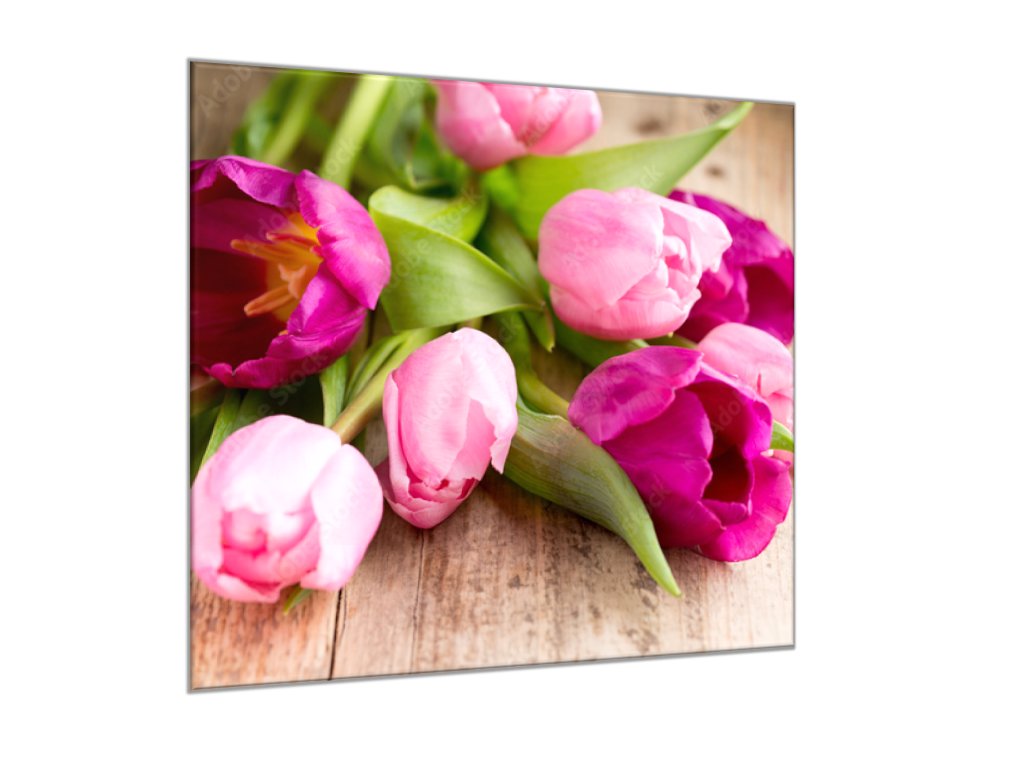 Obraz do ložnice čtvercový květy růžových tulipánů