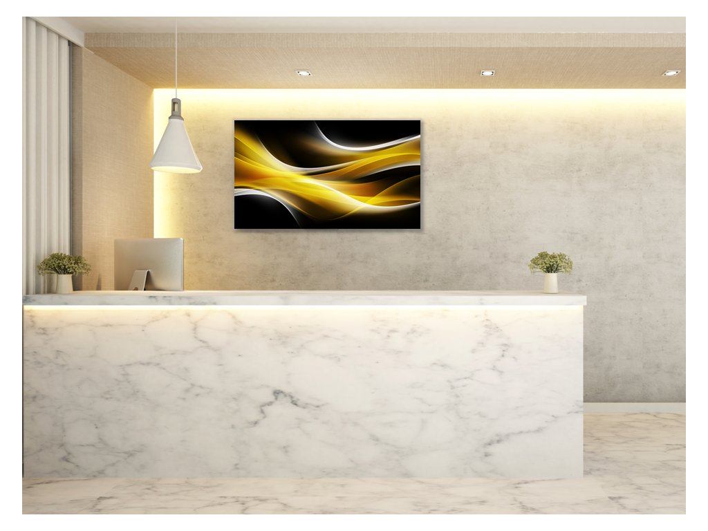 Obraz skleněný abstrakt žlutá vlna na černém pozadí