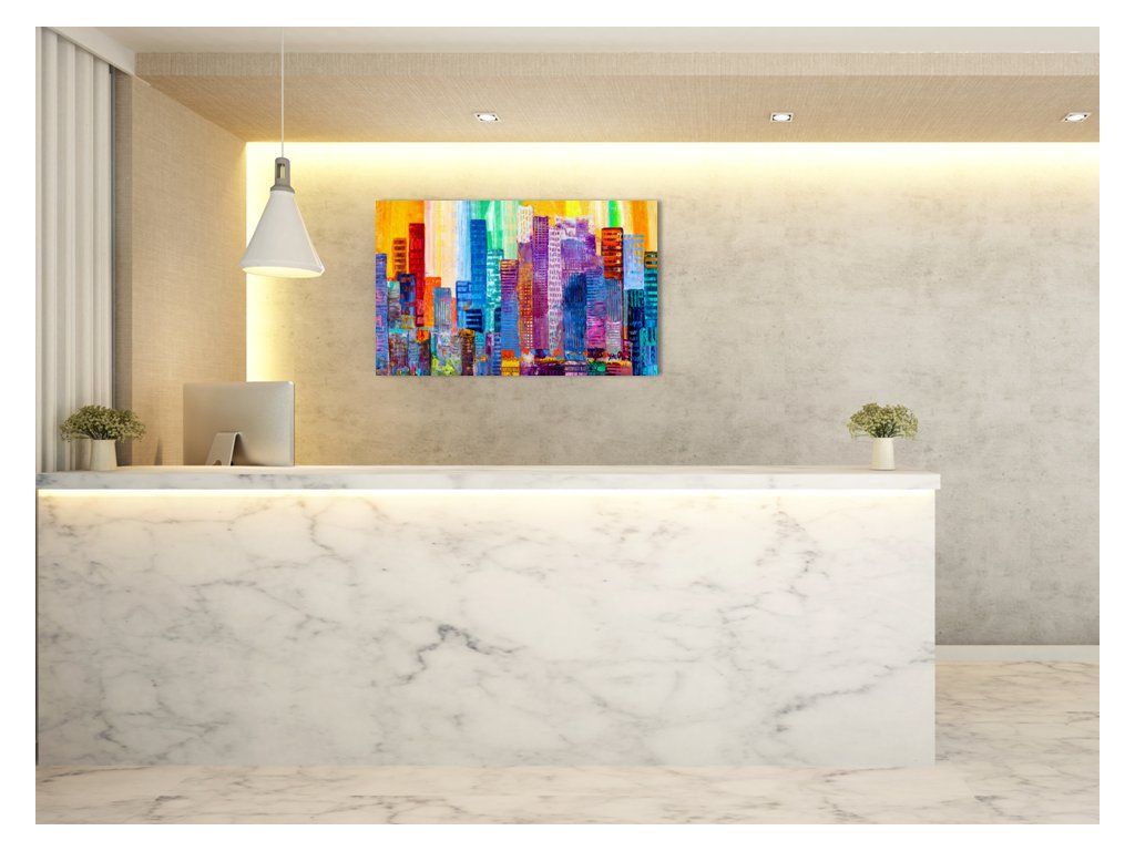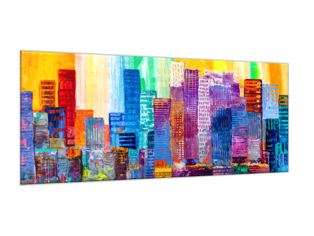 Obraz skleněný abstraktní barevné mrakodrapy