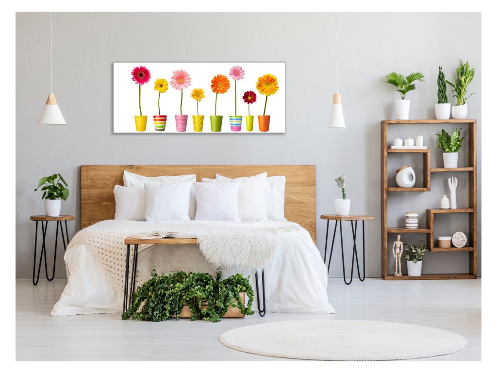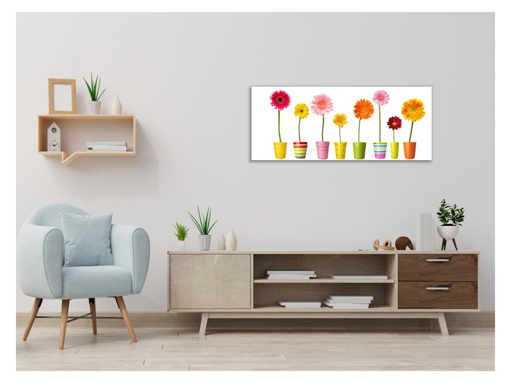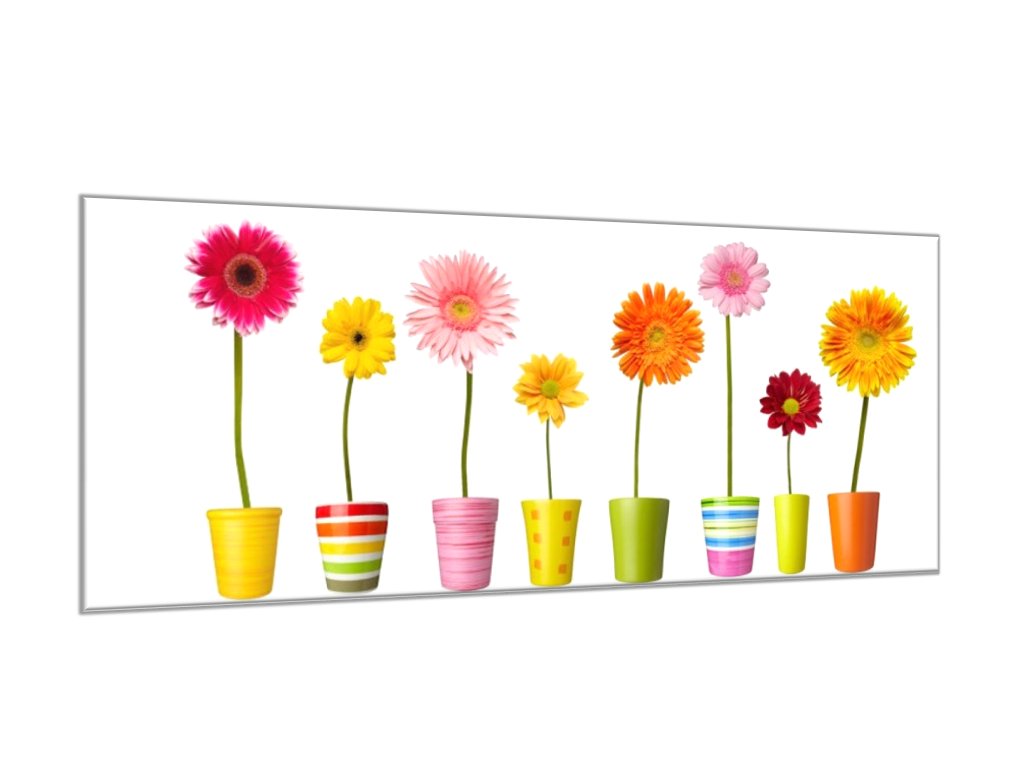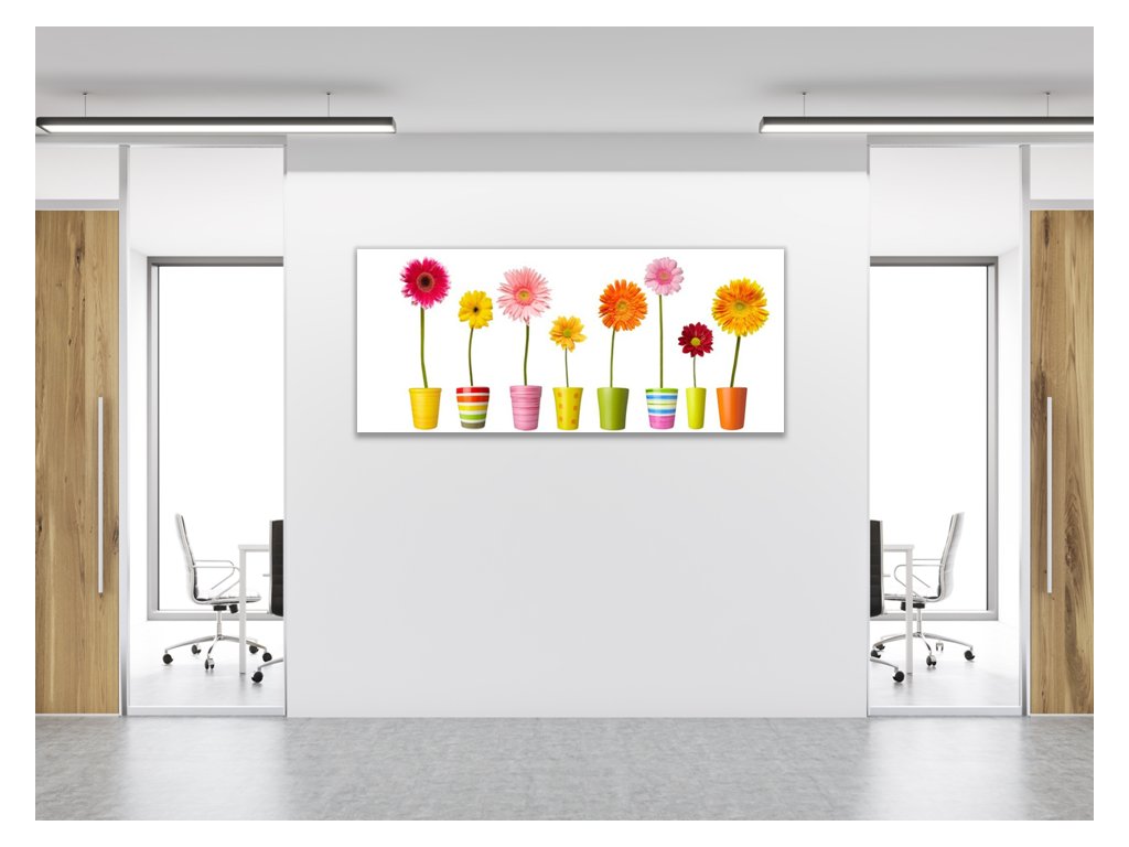 Obraz skleněný barevné gerbery v květináči