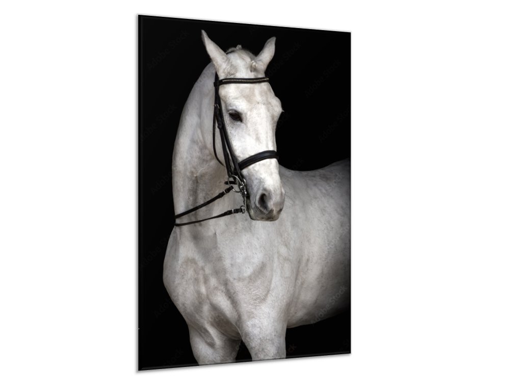 Obraz skleněný bílý kůň na černém pozadí