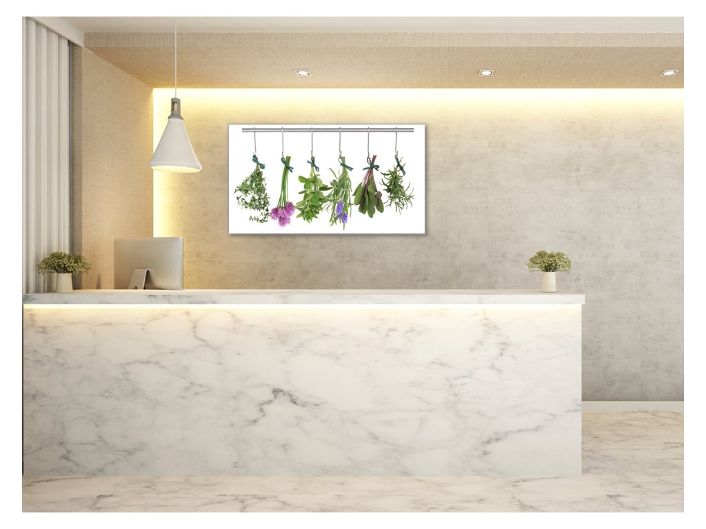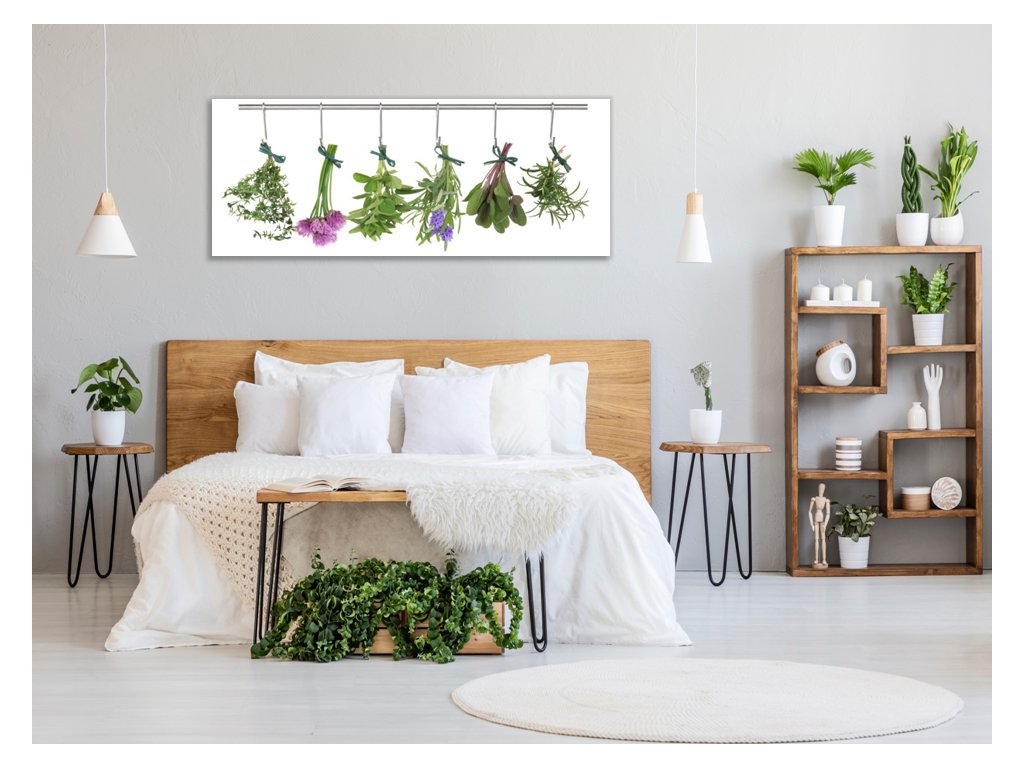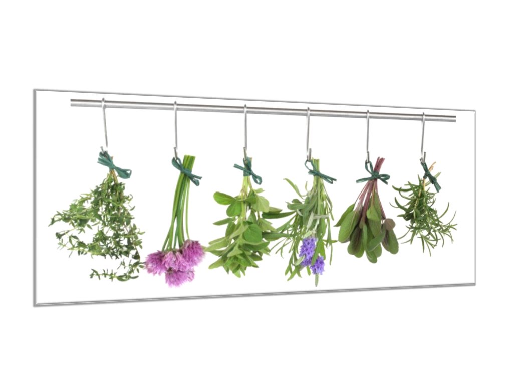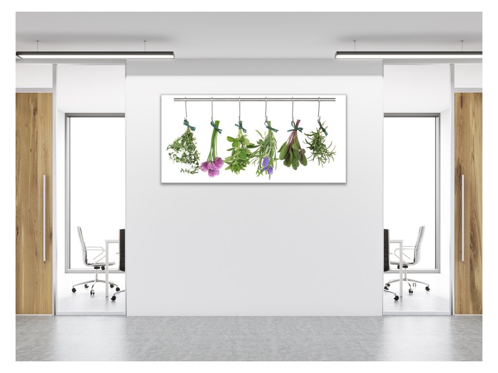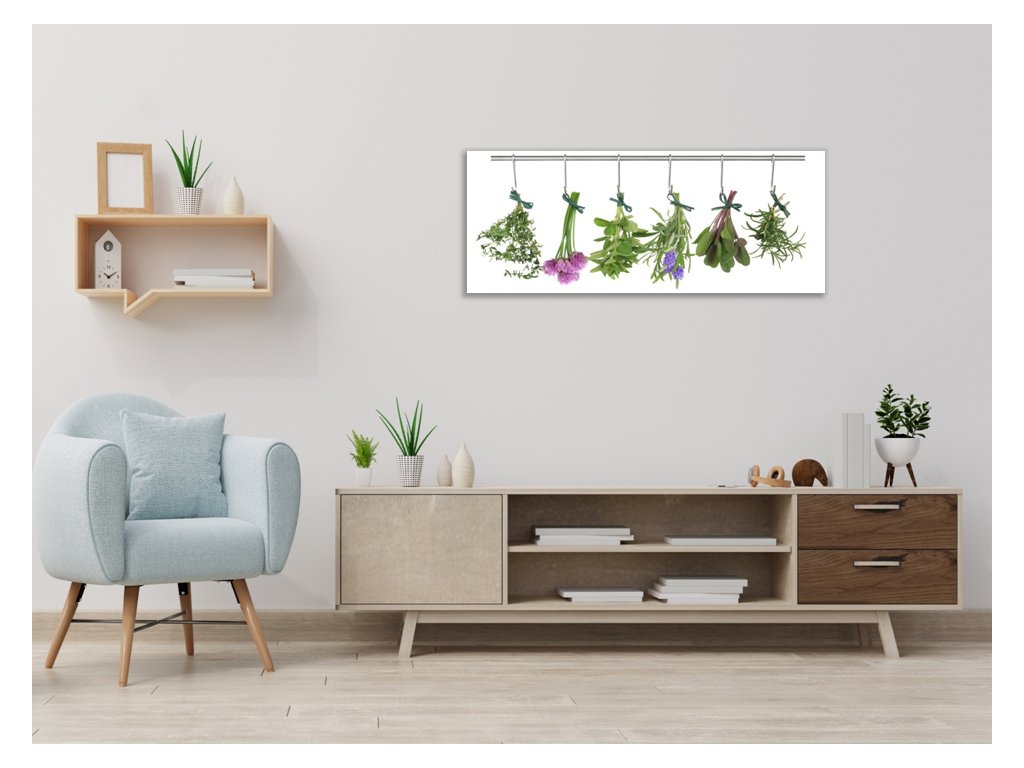 Obraz skleněný byliny zavěšené k sušení na tyči