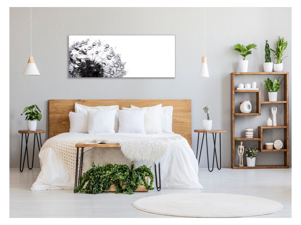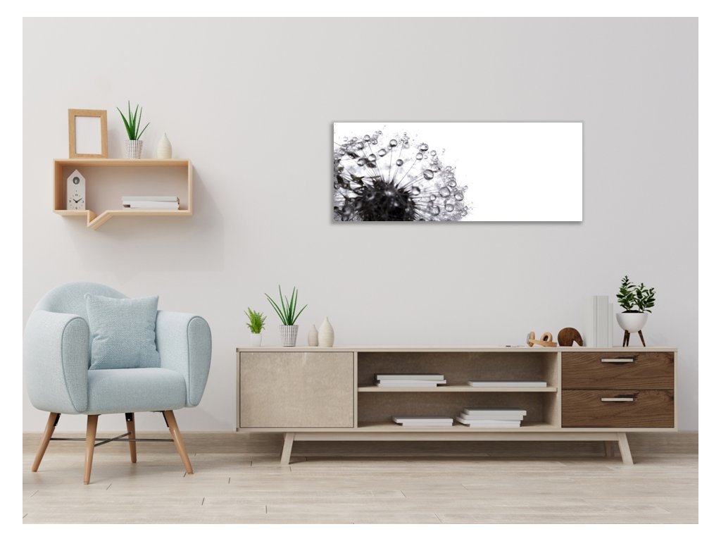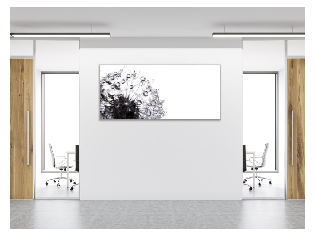 Obraz skleněný černá odkvetlá pampeliška s rosou