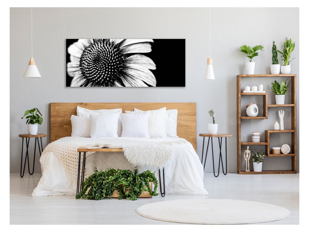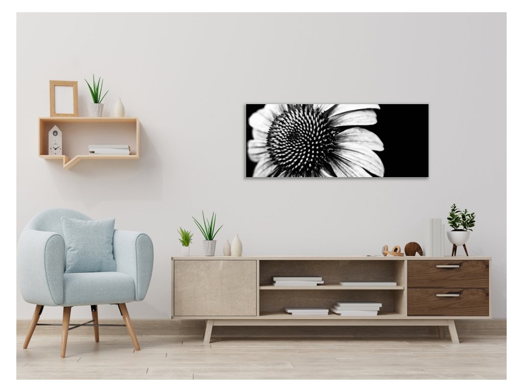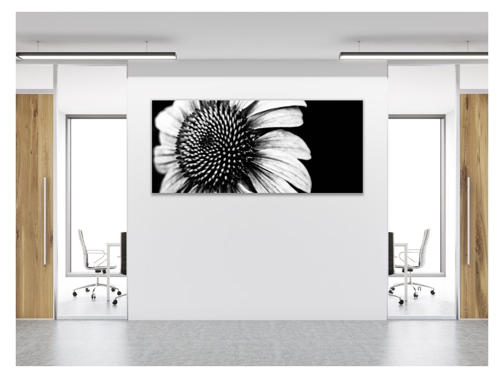 Obraz skleněný černobílý květ slunečnice