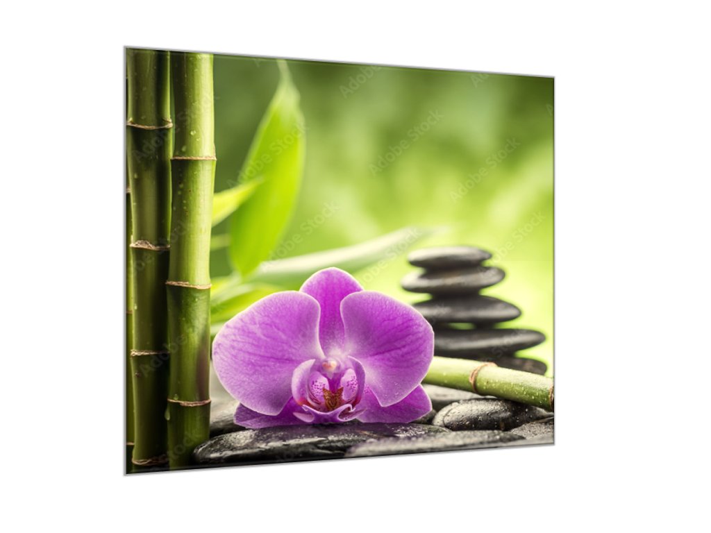 Obraz skleněný čtvercový bambus, orchidej a kámen