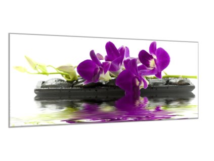 Obraz skleněný temný květ orchideje na kameni a hladině