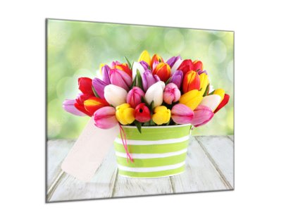Obraz skleněný čtvercový kytice barevných tulipánů v květináči
