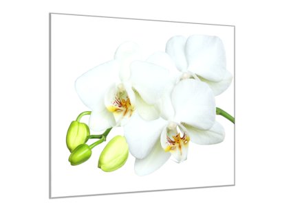 Obraz skleněný čtvercový bílý květ a poupata orchidej