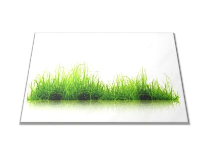 Skleněné prkénko zelená tráva na bílém podkladu