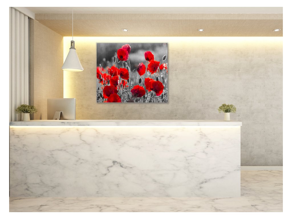 Obraz skleněný čtvercový červené květy vlčího máku na šedém