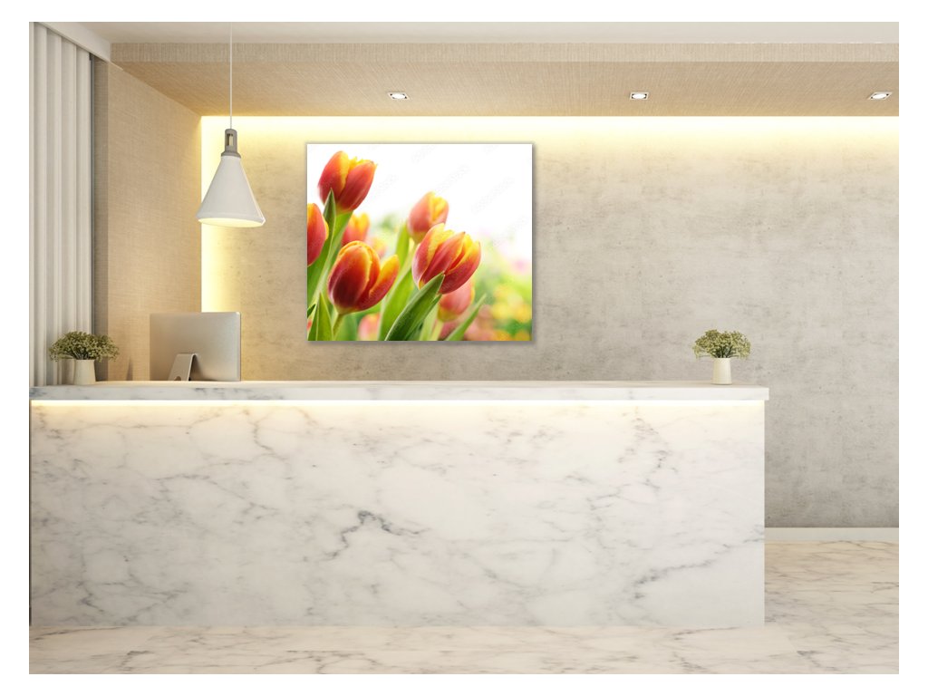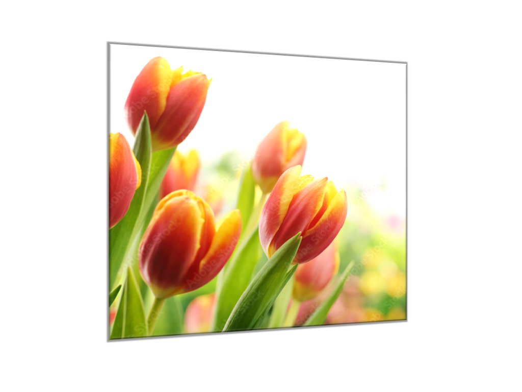 Obraz skleněný čtvercový červeno žluté tulipány