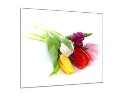 Obraz skleněný čtvercový květy tulipánů na bílém podkladu