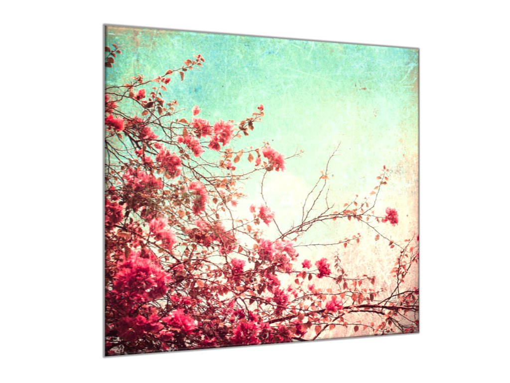Obraz skleněný čtvercový keř růžové květy, nebe