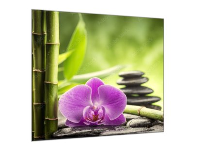 Obraz skleněný čtvercový bambus, orchidej a kámen