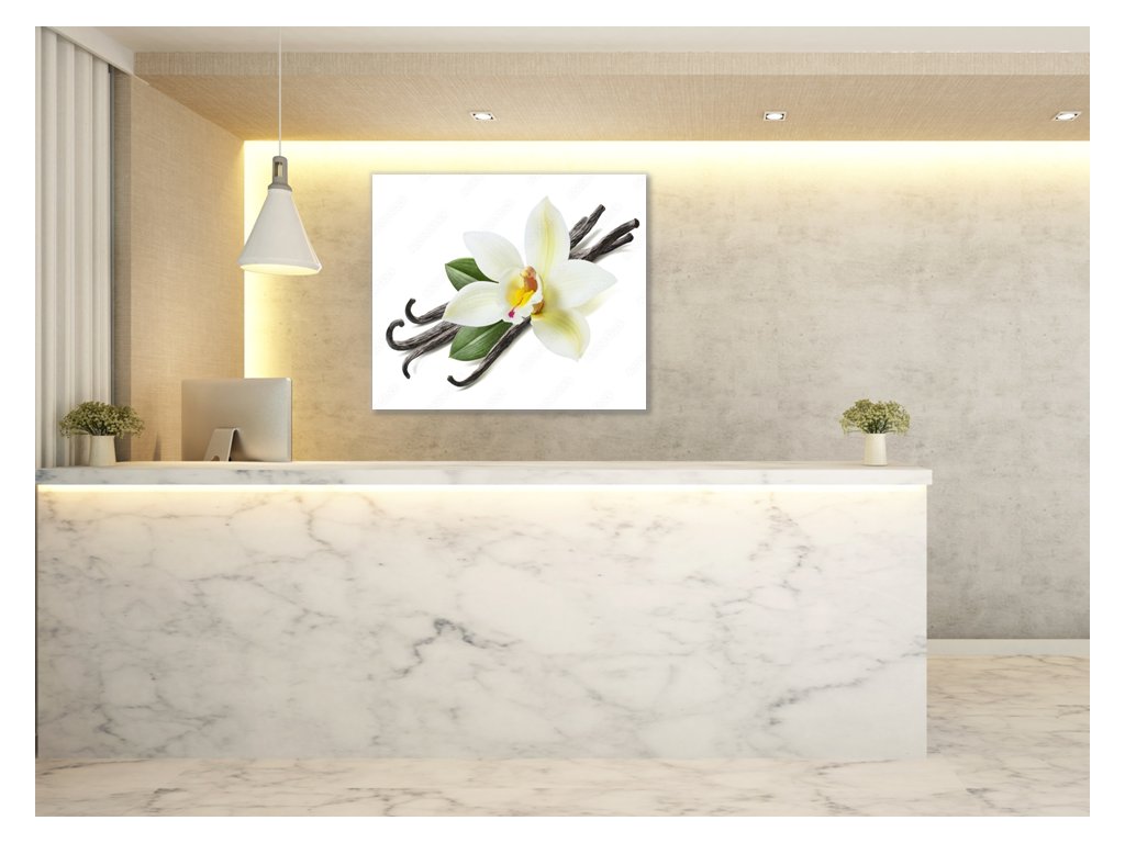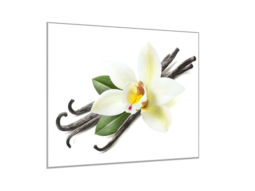 Obraz skleněný čtvercový květ bílé orchideje a lusky vanilky