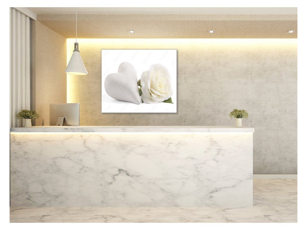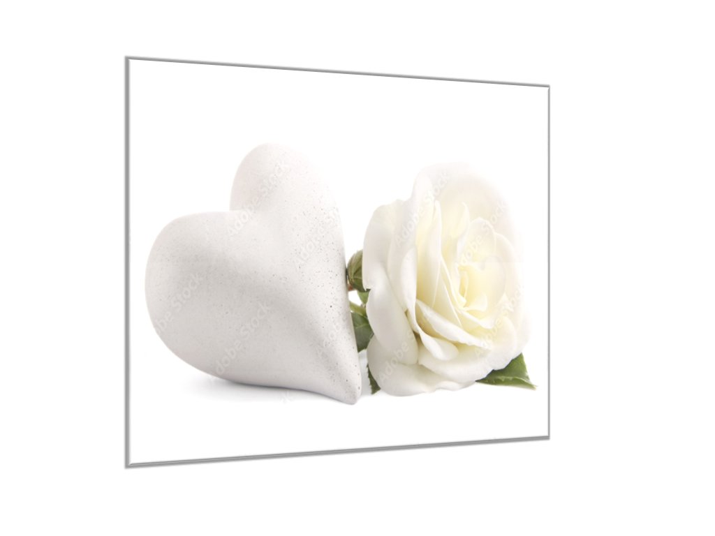 Obraz skleněný čtvercový květ bílé růže a srdce