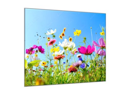 Obraz skleněný čtvercový květy barevná rozkvetlá louka