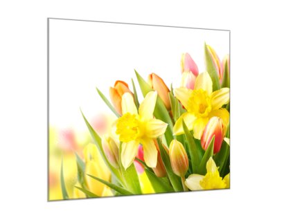 Skleněný obraz na zeď květy narcisů a tulipánů