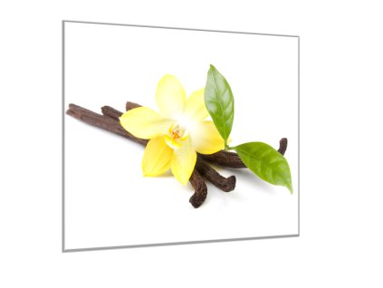 Obraz skleněný čtvercový žlutá orchidej, list a vanilka