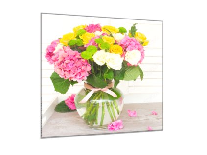 Obraz skleněný čtvercový kytice květů hortenzie a růže