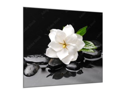 Obraz skleněný čtvercový bílý květ na černém pozadí