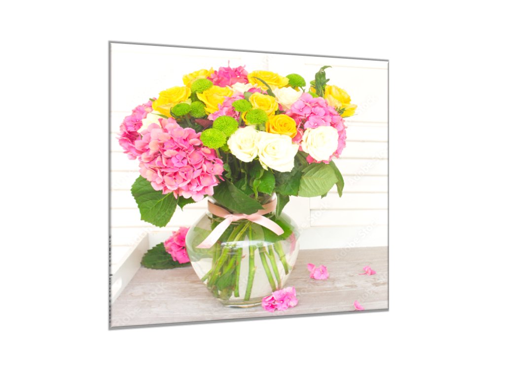Obraz skleněný čtvercový kytice květů hortenzie a růže