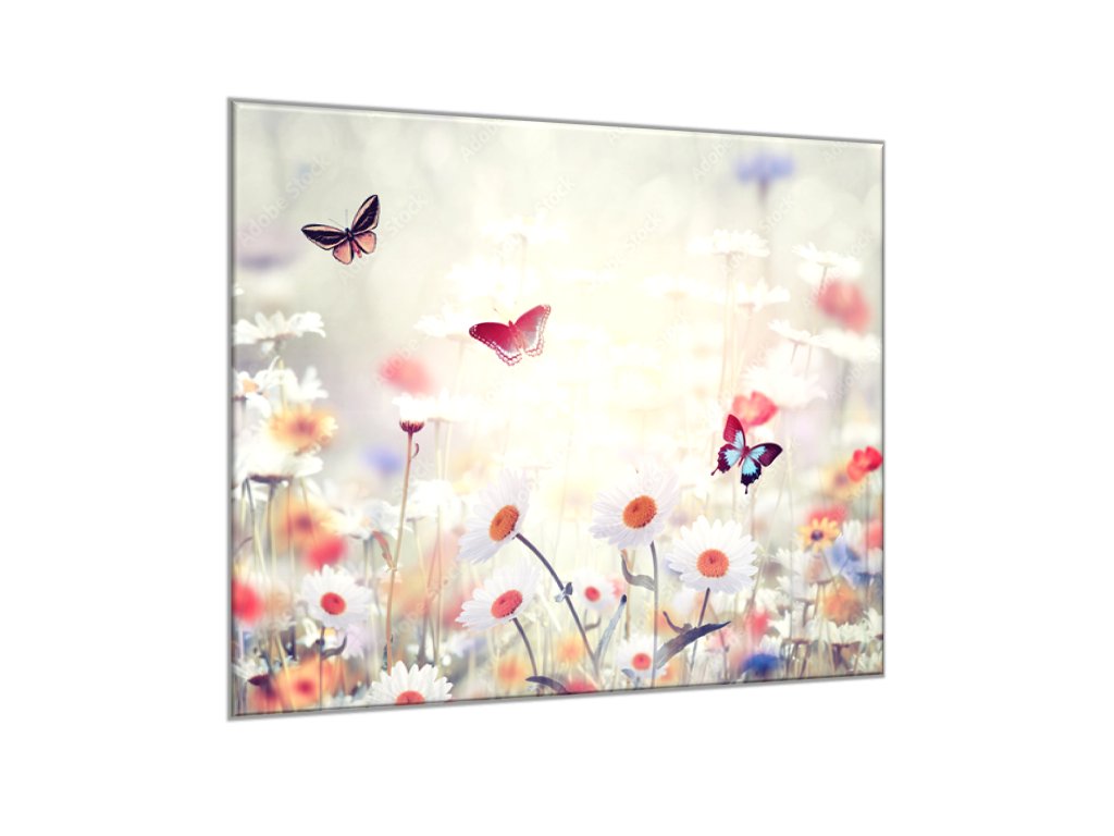 Obraz skleněný čtvercový malované luční kopretiny a motýli