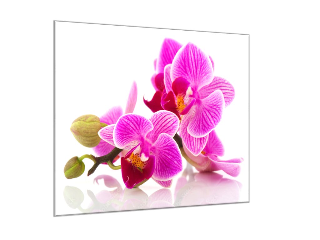Obraz skleněný čtvercový poupata a květy růžové orchideje
