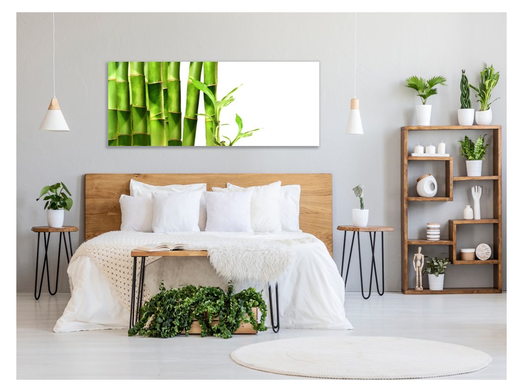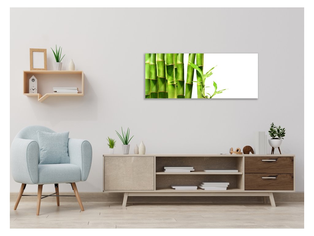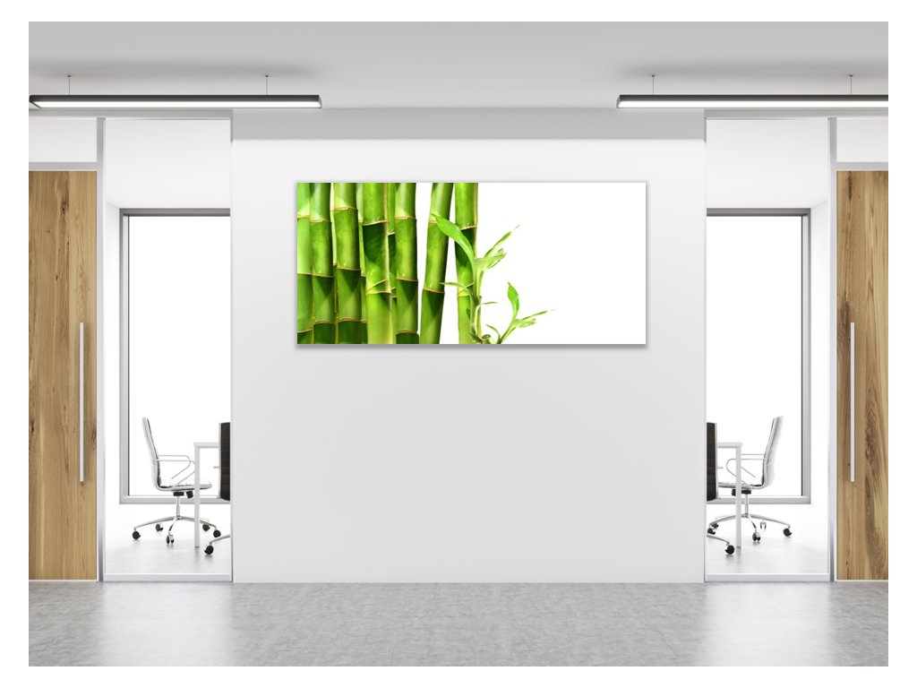 Obraz skleněný detail bambus zelený na bílém pozadí