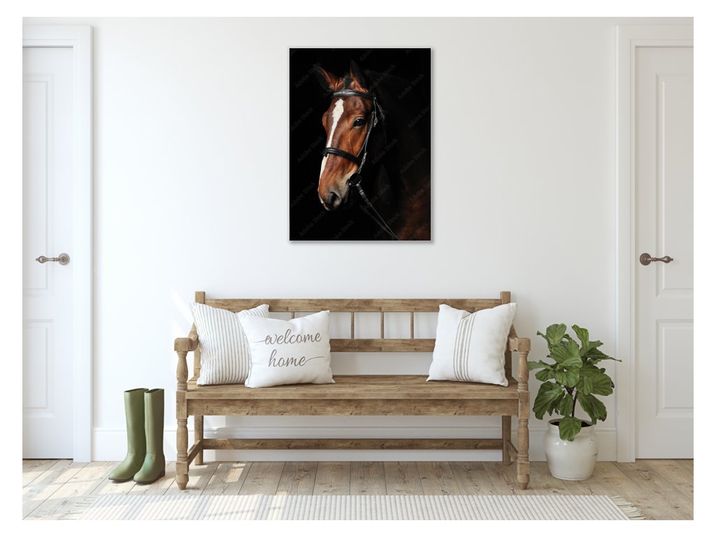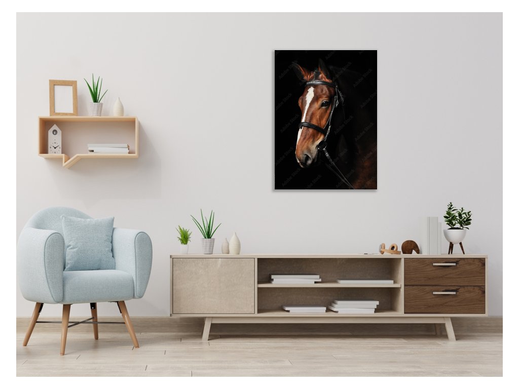 Obraz skleněný hnědý kůň s bílou lysinou