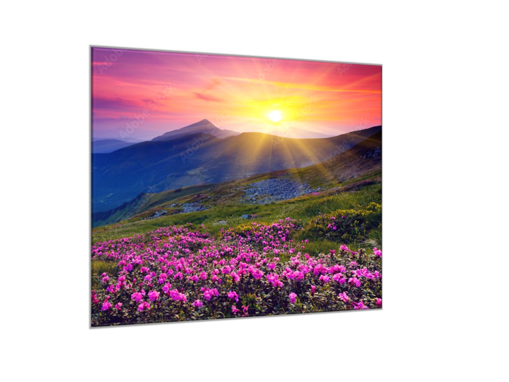 Obraz skleněný horská louka se západem slunce