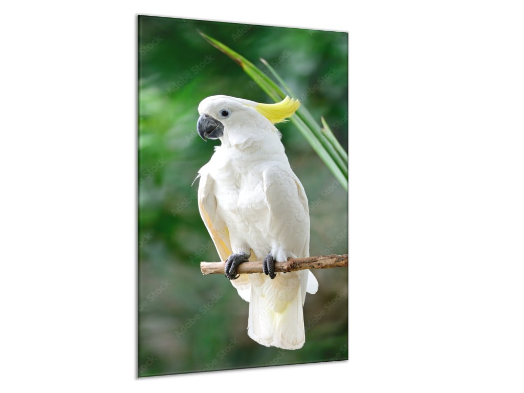 Obraz skleněný kakadu žlutočečelatý na bidle