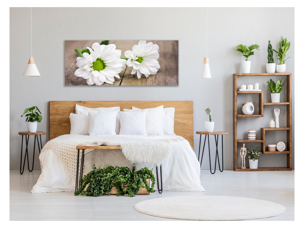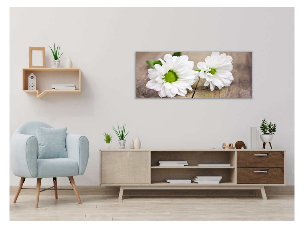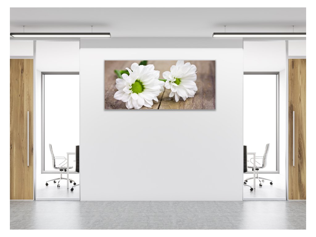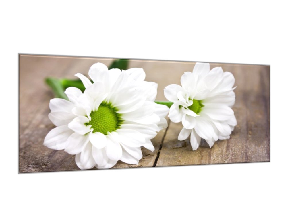Obraz skleněný květ bílé chryzantémy na dřevě