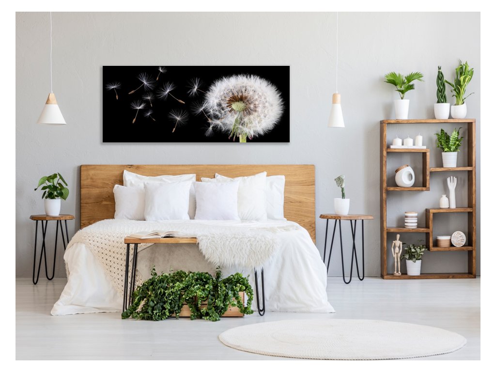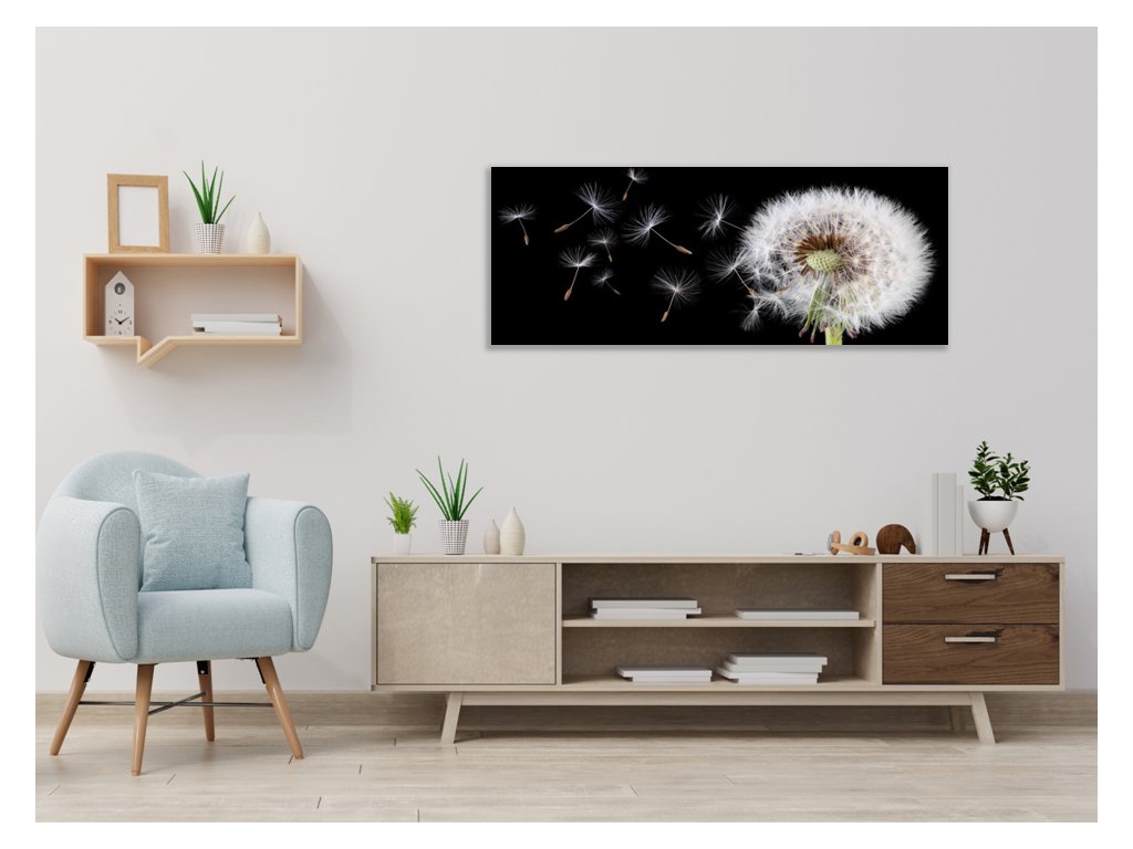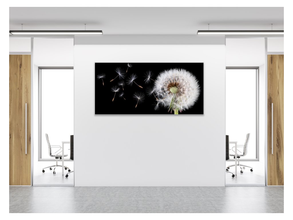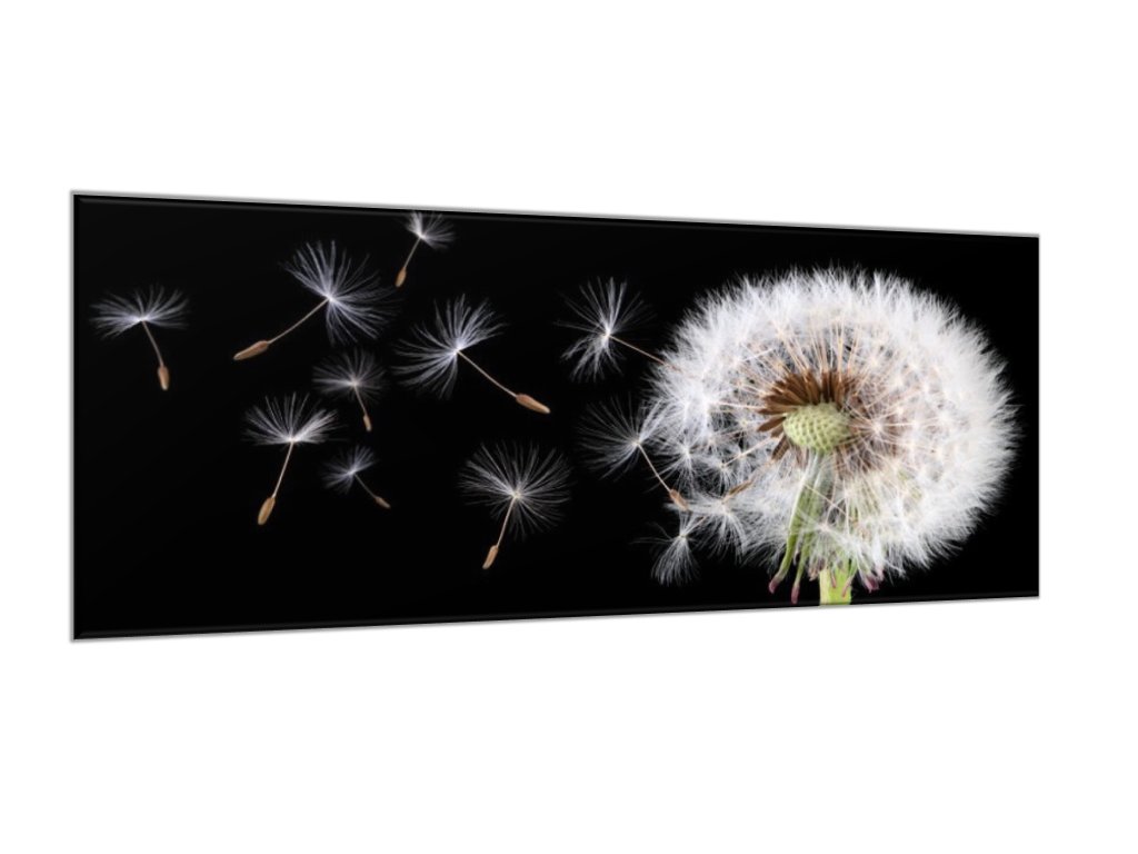 Obraz skleněný květ odkvetlá pampeliška a letící padáčky