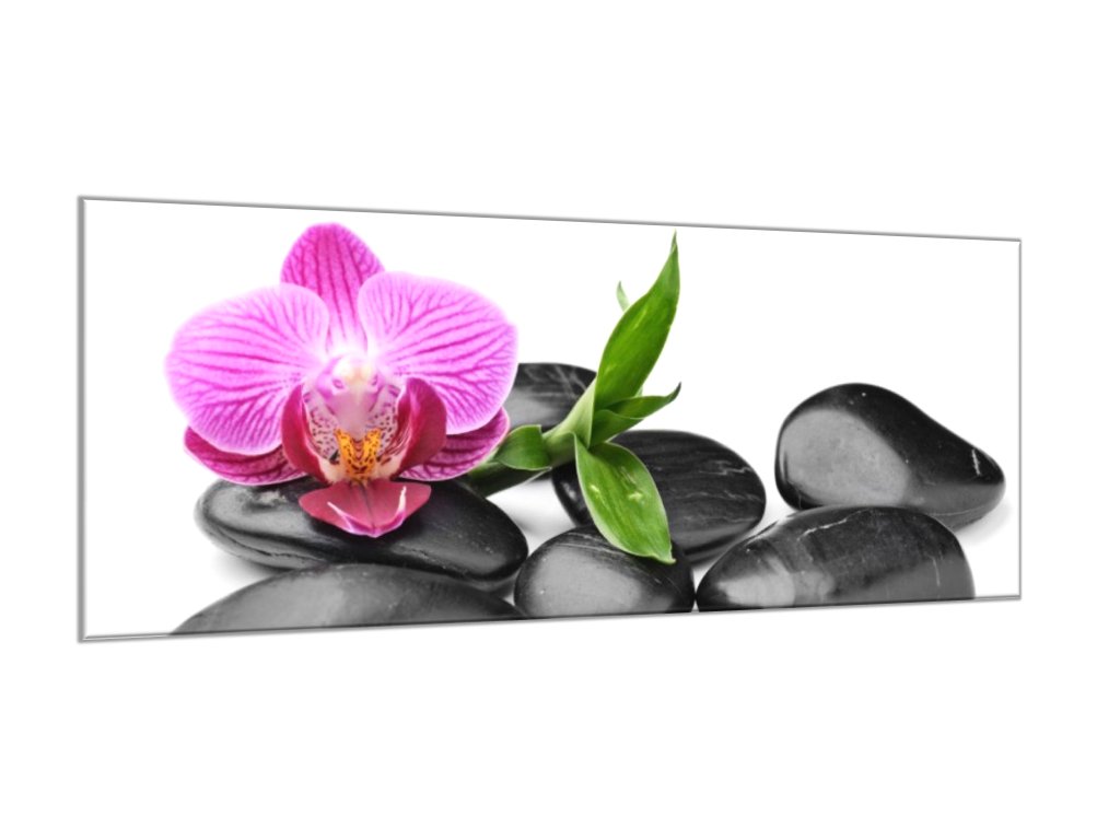 Obraz skleněný květ růžová orchidej, bambus, černý kámen