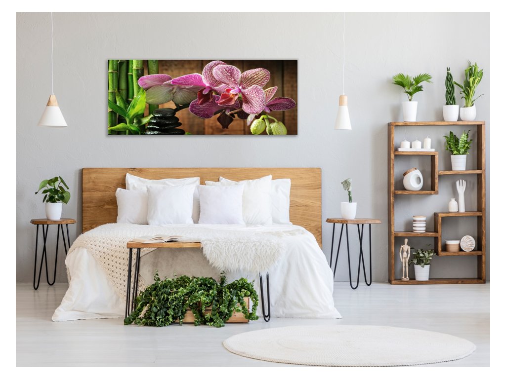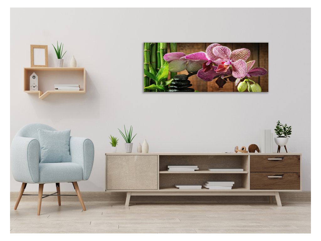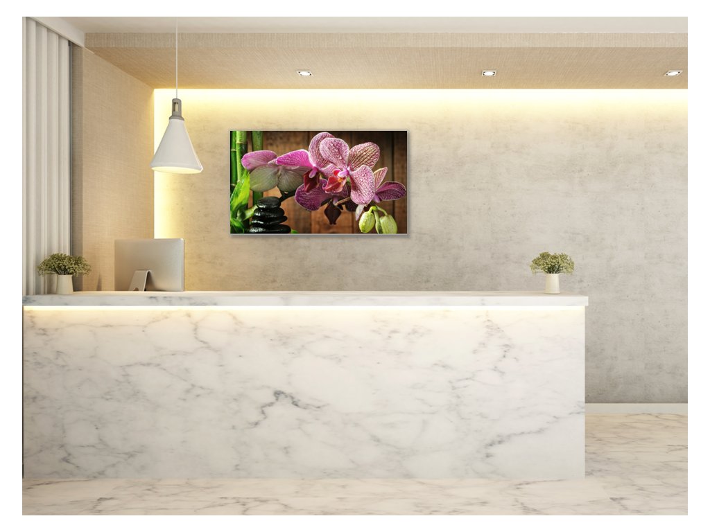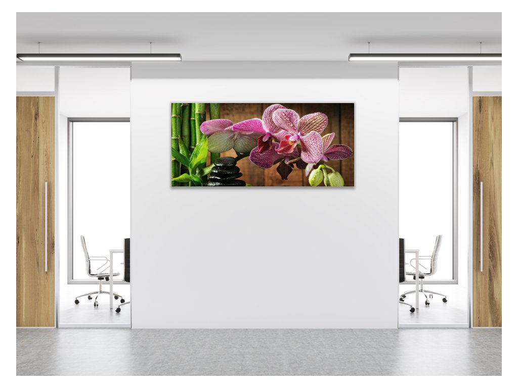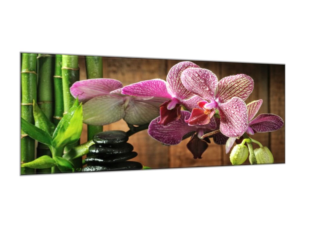 Obraz skleněný květ růžová orchidej bambus a zen kámen