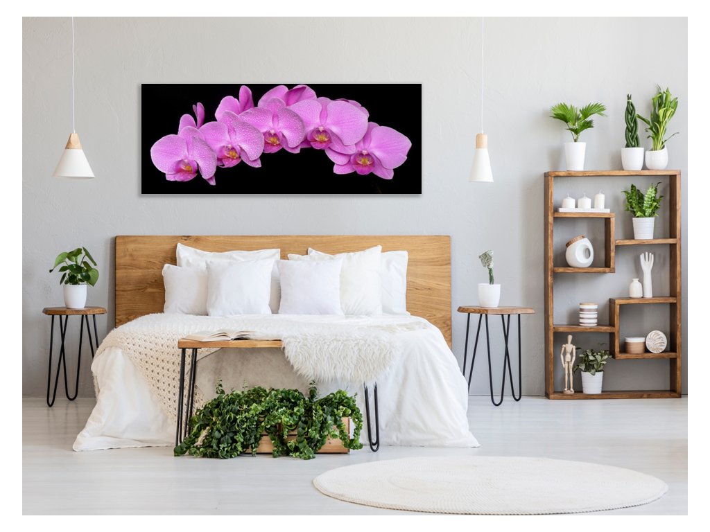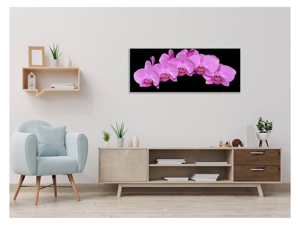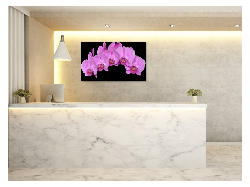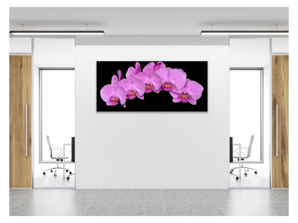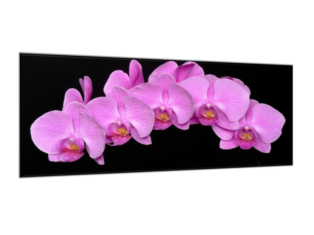 Obraz skleněný květy fialová orchidej na černém pozadí