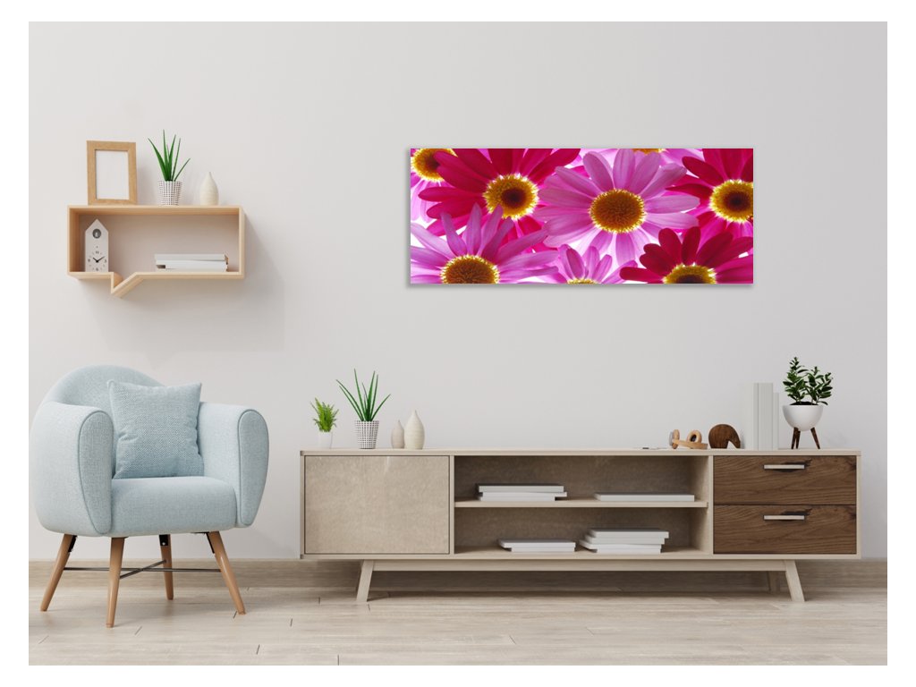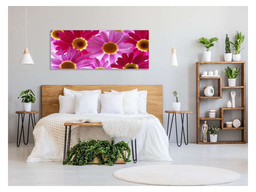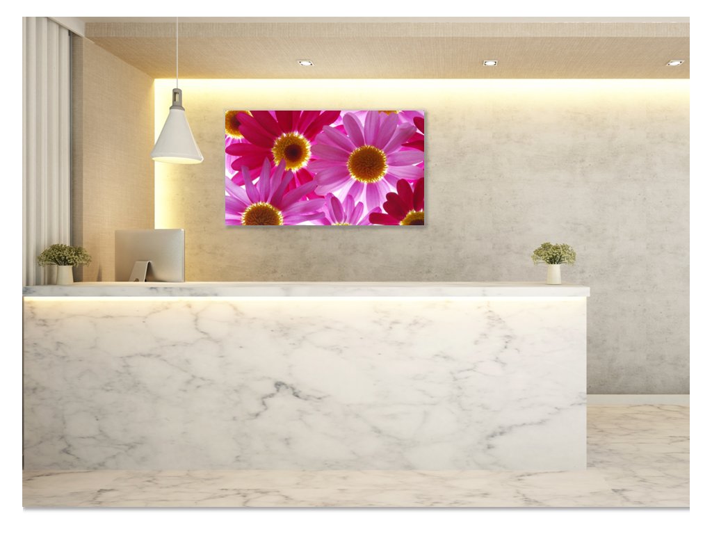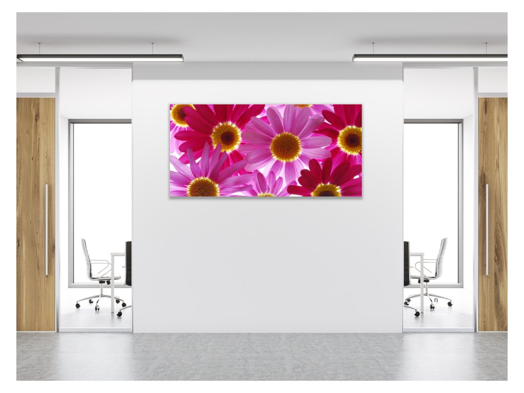 Obraz skleněný květy růžové a červené kopretiny