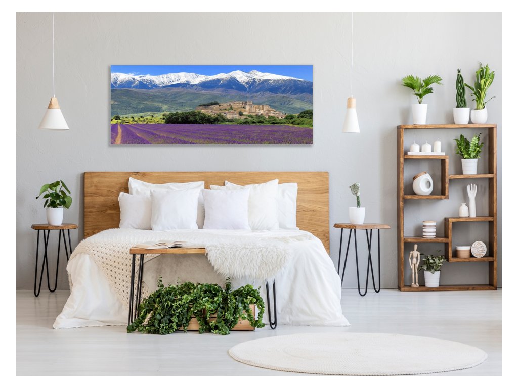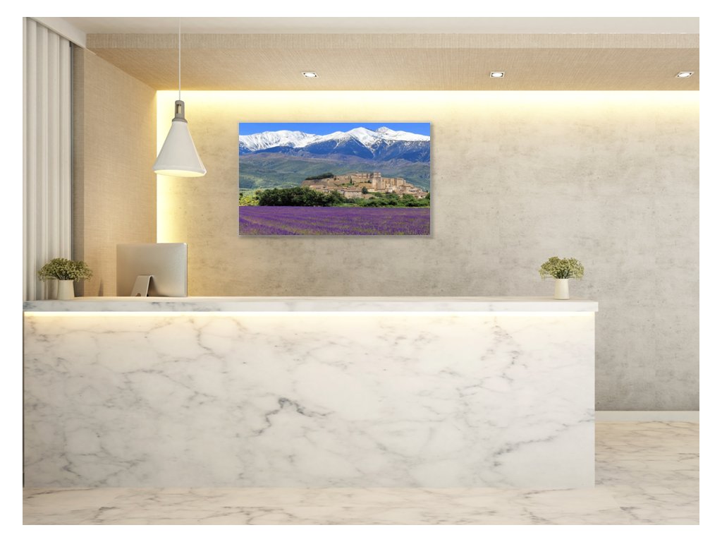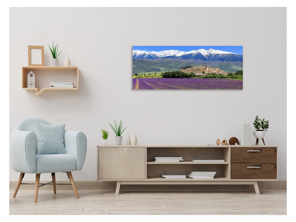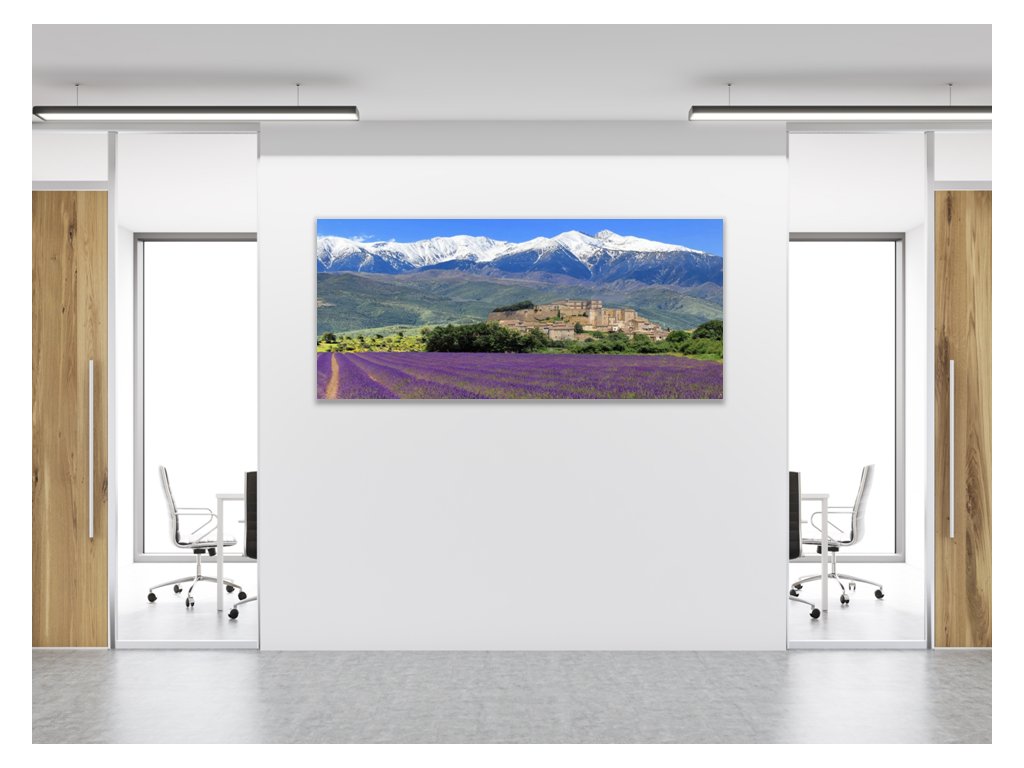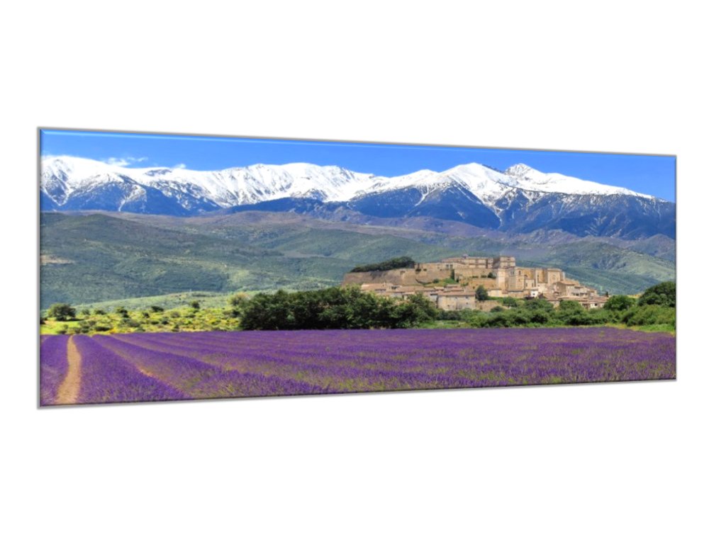 Obraz skleněný levandulové pole pod horami