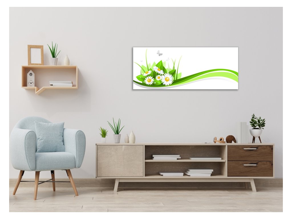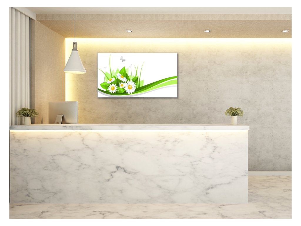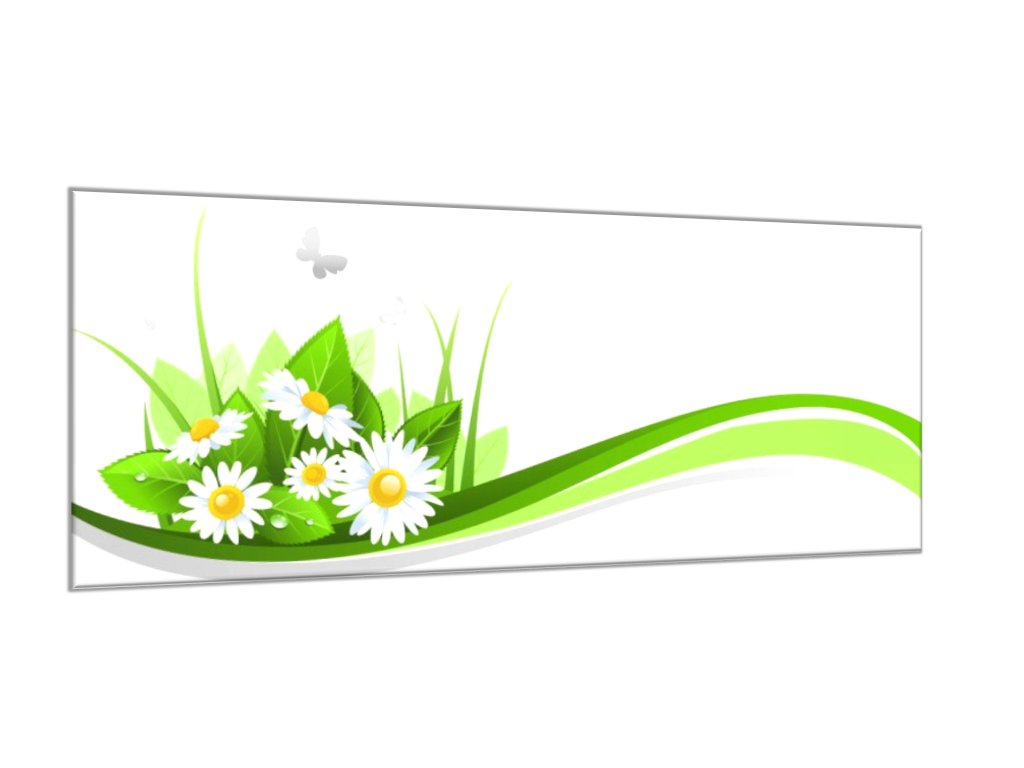 Obraz skleněný malovaná tráva a sedmikrásky