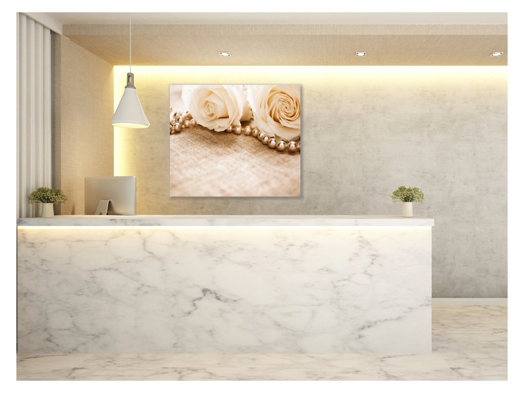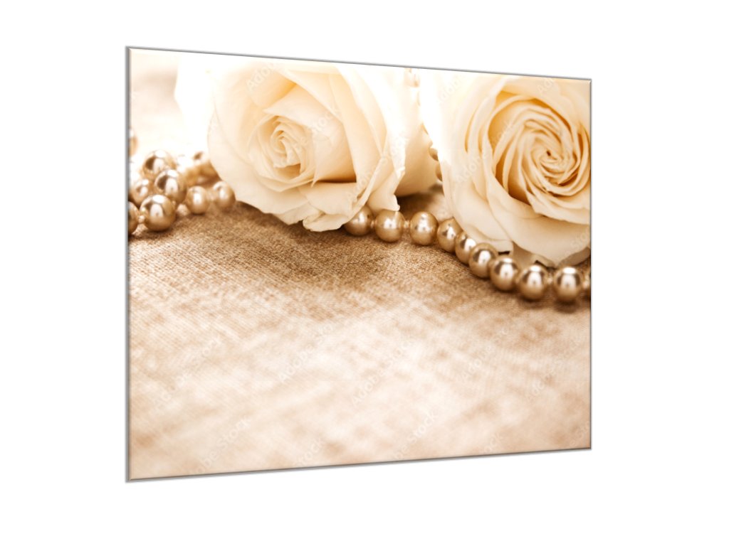Obraz skleněný perly a květy růží