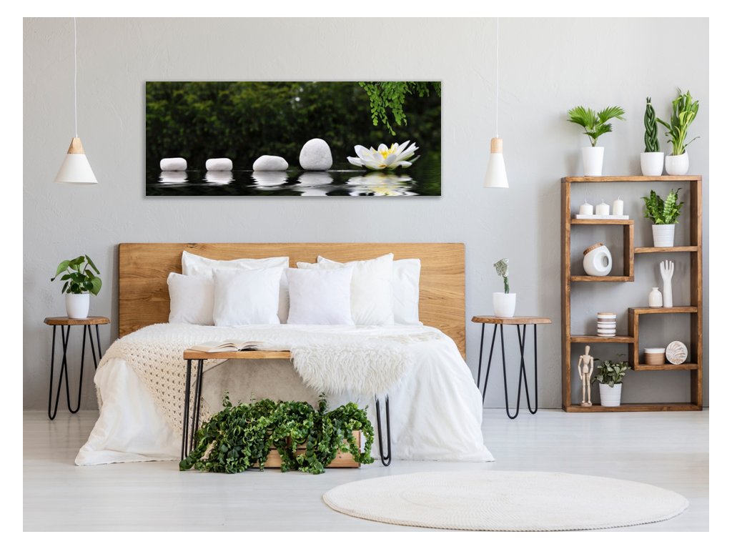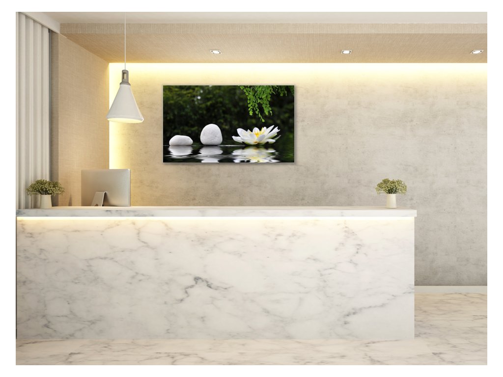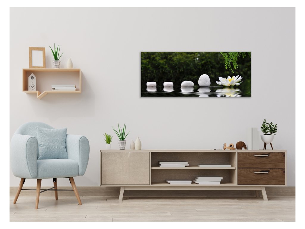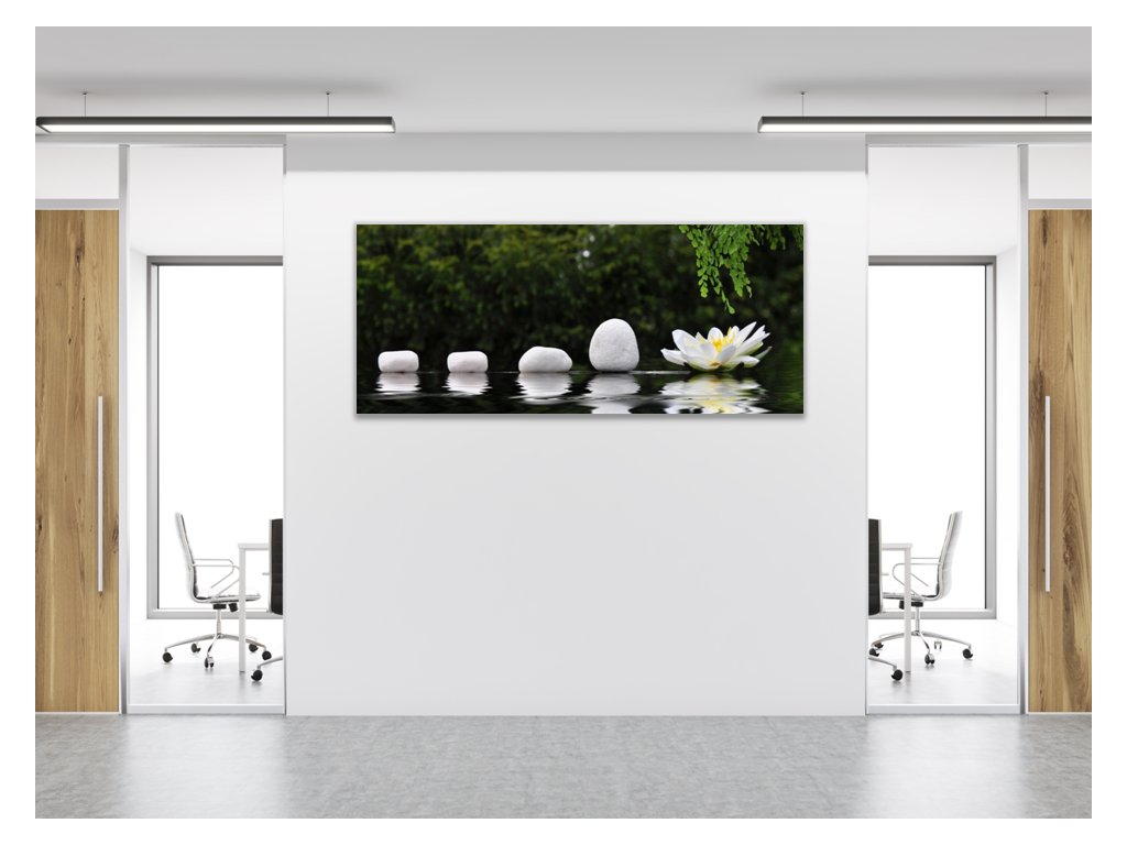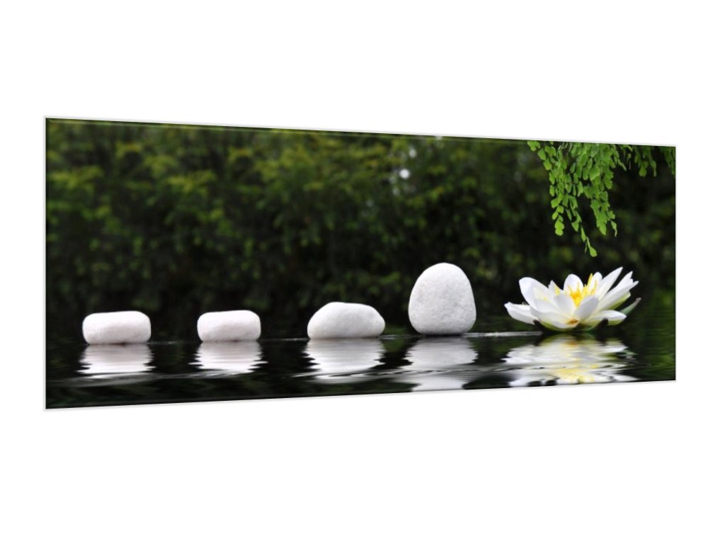 Obraz skleněný řada kamenů a leknín