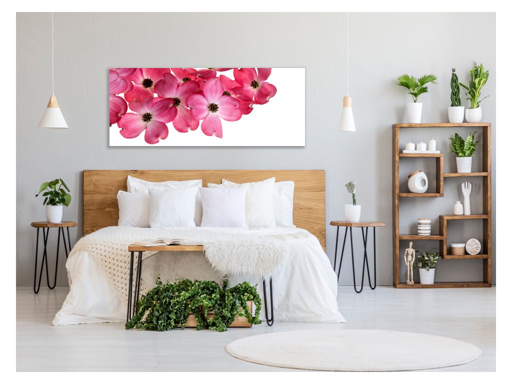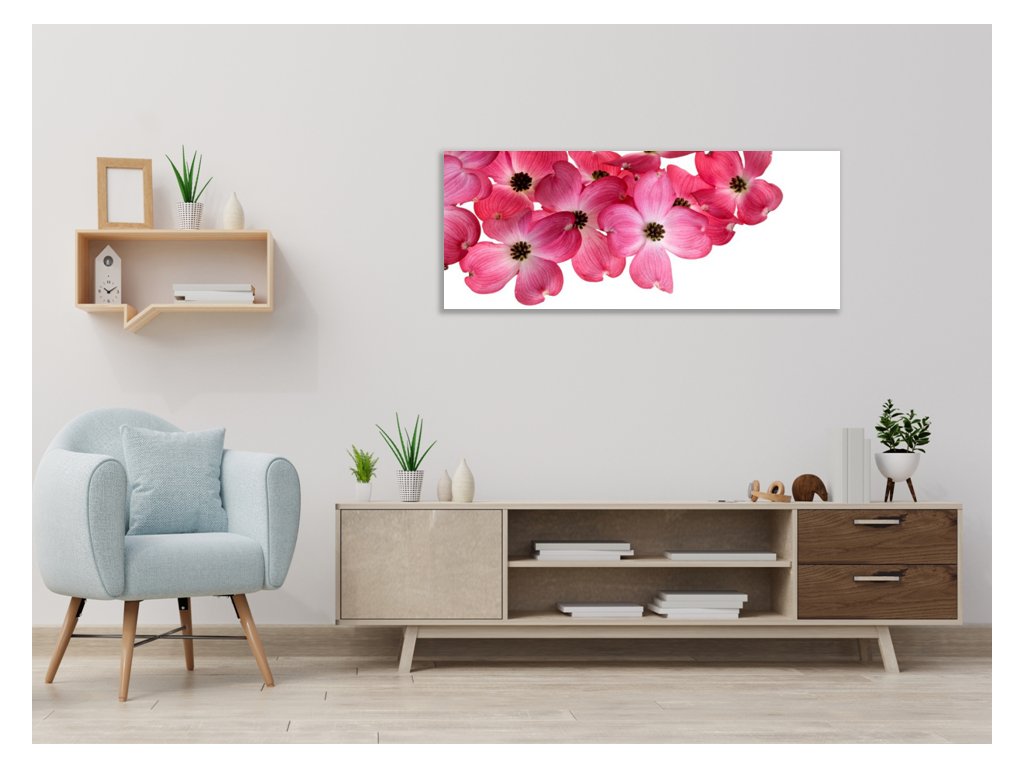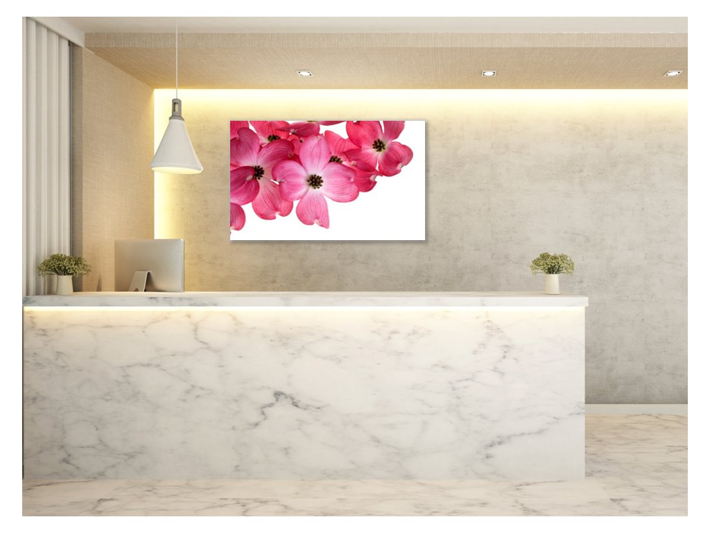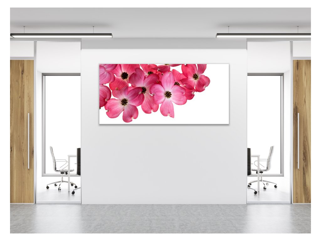 Obraz skleněný růžové květy na bílém pozadí