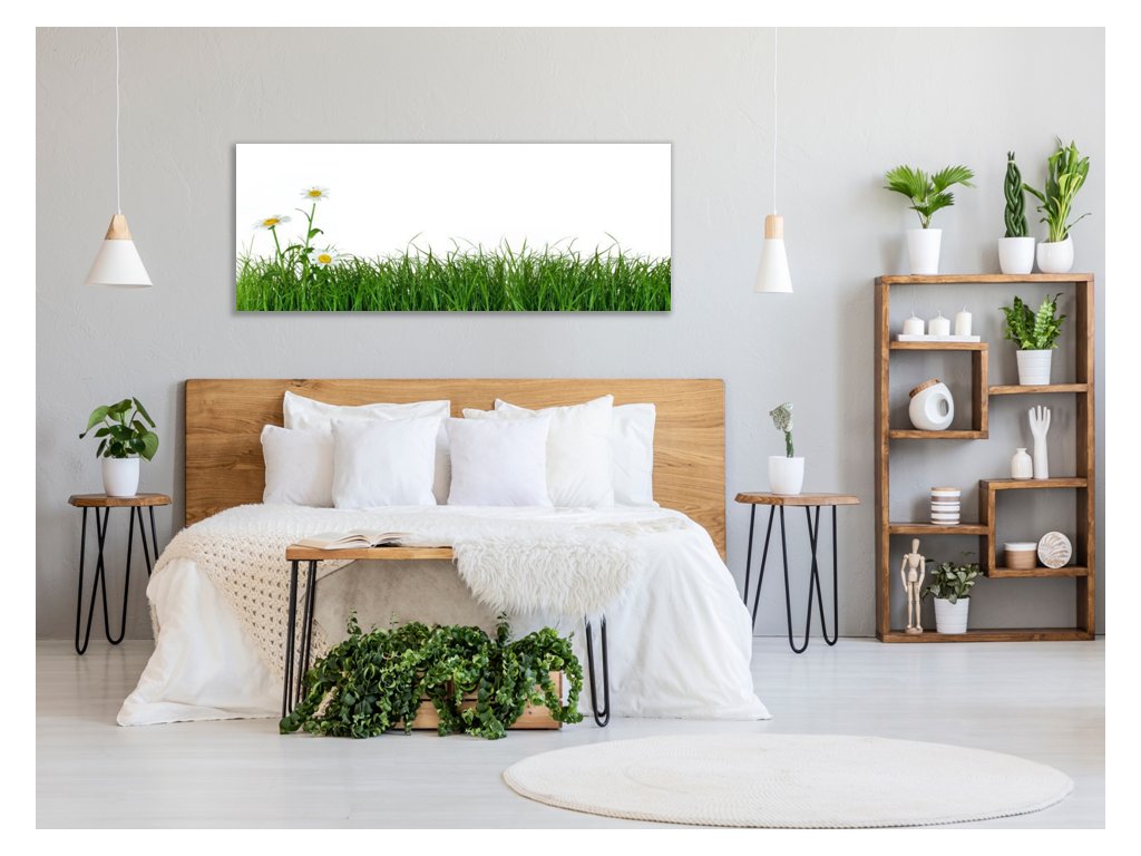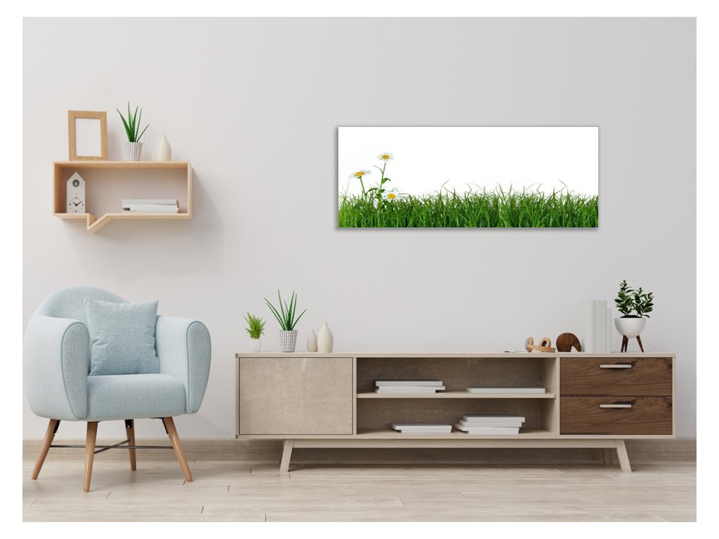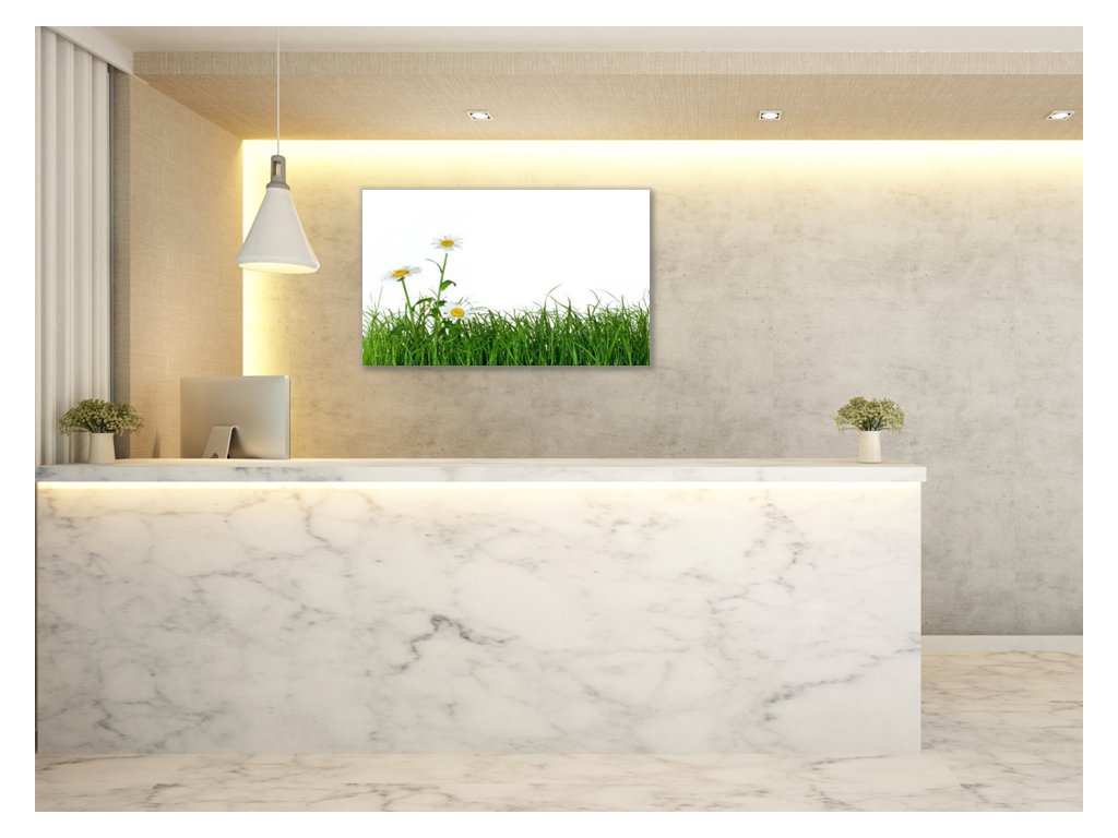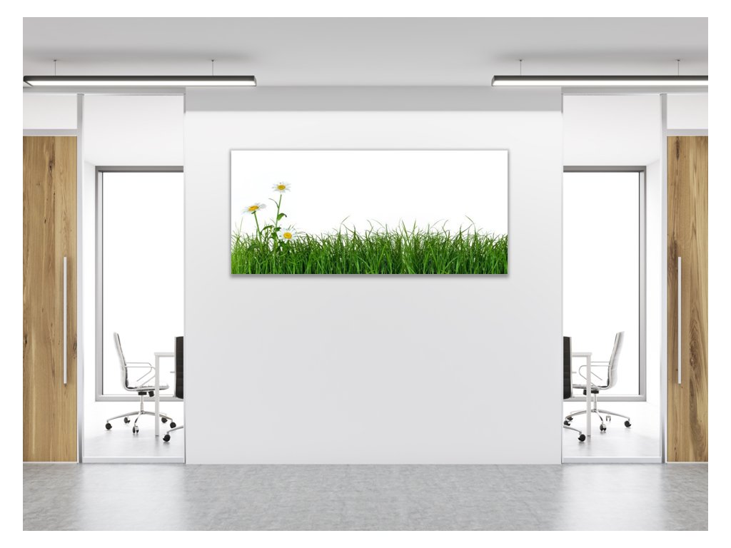 Obraz skleněný tráva s květem kopretiny